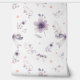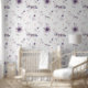 Papier peint mignon avec fleurs violettes et arcs sur l'arrière - plan blanc. Parfait pour la chambre et les crèches pour filles - Kate Eden Art