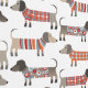 Un petit Dachshund Wiener Sausage chiens amusants dans des chandails douillets, idéal pour les chiens et les amoureux des animaux. Art original de Nic Squirrell.