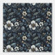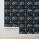 Papier Peint Dark Academia Fleurs blanches et Feuilles bleus
