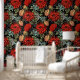 Papier Peint Dark Academia Maximalist Red Dahlia Floral