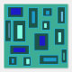 Bleu clair et vert menthe rectangles et carrés sur arrière - plan vert. Motif simple et colorée