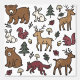 le charmant motif animal de bois présente une collection de créatures forestières dessinées à la main et d'éléments naturels dans une palette de couleurs chaudes et terreuses. Le style griffé des gribouillis est parfait pour un décor cosy d'inspiration nature ou des dessins pour enfants. Main dessinée par McBooboos