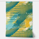 Cette oeuvre présente un motif dynamique et dynamique de points et de coups de pinceau, créant un effet visuel saisissant. La composition est composée d'une palette de couleurs audacieuses, turquoises, jaunes et blanches, avec des points variant en taille et en densité pour former des vagues et des gradients à travers la toile. L'interaction entre les points ronds et lisses et les coups de pinceau rugueux et rampants ajoute un sens du mouvement et du rythme à la pièce, évoquant une esthétique rétro inspirée du pop-art. Le design est à la fois ludique et audacieux, avec un sens de l'abstraction moderne.