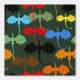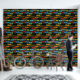 Un groupe d'ailes de dragons aux couleurs noir, marron, rouge, orange, jaune, bleu et vert s'ouvre sur les ailes sur un fond vert foncé et profond qui grimpe vers le haut. Les dragons sont dessinés dans un style de tatouage tribal.
