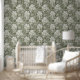Papier Peint Dramatique Baroque Floral Sage Green V2 ID1050