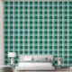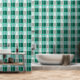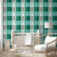 Papier Peint Effet plaid vert frais, turquoise, gris et blanc