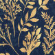 Papier Peint Elégant Foliage Marine-Blue Parties scintillant or