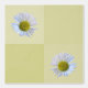 L'oeuvre présente un design moderne et minimaliste de brumes jaunes et vertes ainsi que des fleurs de marguerite blanche, présentées dans un élégant motif carrelé géométrique. Pour des questions ou des demandes spéciales, contactez l'artiste à l'adresse wafadahdalcreates@gmail.com. © Wafa Y. Dahdal - Tous droits réservés.