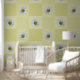 Papier Peint Elégant Jaune Vert Mist Carrés Fleurs Faisy