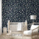 Ce motif floral sans couture présente de délicates marguerites blanches aux centres jaunes doux, entourées de feuilles vert pâle et de petits bourgeons, le tout dressé contre un arrière - plan bleu marine profond inspiré de William Morris. Le design dégage une élégance classique et intemporelle, parfaite pour les papiers peints, textiles et papeterie. Le contraste entre les fleurs vibrantes et le fond sombre crée une esthétique sophistiquée et apaisante.