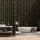 Papier peint élégant pour espaces modernes avec un motif doré art déco orné sur un arrière - plan noir.