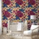 Papier Peint Elégante marine Bourgogne Floral Watercolo