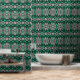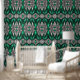 Papier Peint Émeraude vert et Motif argenté Peel and Stick