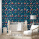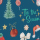 Papier Peint en saison, aquarelle noël bleu rétro