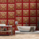Peel et bâton papier peint fleurs or motif sur arrière - plan rouge. Super projet do-it-yourself facile pour les locataires propriétaires d'intérieur designers. Créez un look personnalisé pour votre bureau d'appartements ou votre entreprise. Décorez les bougies porte-dessous de verre meubles cuisine arrière-fond panneaux porte-porte porte porte porte porte porte porte porte-conteneurs de rangement de tête de lit.