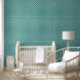 Papier Peint Etoiles blanches orange vert géométrique sur vert
