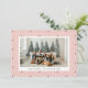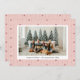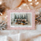 Carte de vacances avec un papier peint rayé rouge et rose arrière - plan avec une photo de famille jumelée avec un accueil de vacances et votre nom et votre année dans une police sans serif.