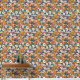 Cette oeuvre éclaire d'un agencement dense et animé de fleurs vibrantes, créant une riche tapisserie de couleurs et de formes. Les motifs floraux se déclinent en orange, bleu, rose et blanc, entrelacés par des lignes délicates qui ajoutent détails et texture. Les pétales qui se chevauchent et les différentes tailles des fleurs donnent de la profondeur et de l'énergie au design, évoquant un sentiment d'abondance et de célébration. La composition est à la fois ludique et complexe, avec un équilibre dynamique de la couleur et de la forme.