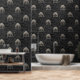 Attention aux fans de Goth ! Ce papier peint présente le design exclusif de Leslie Sigal Javorek d'une fenêtre gothique avec squelettes et chauves-souris cachés dans l'ombre. Regardez dans les vitres pour voir les chauves-souris et les squelettes. Pour voir ce design sur d'autres produits, visitez le magasin Zazzle de Leslie, HoMeArts à l'adresse suivante : www.zazzle.com/homearts