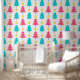 Festif bleu rose sapin de Noël motif carrelage Papier peint