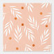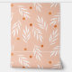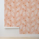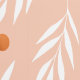 Le papier peint moderne peel and stick aux motifs de feuilles blanches et points oranges sur un arrière - plan rose abricot est parfait pour ajouter une touche fraîche et élégante à tout espace.