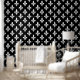 Papier Peint Fleur de Lis Motif, Royal French, Blanc sur Noir