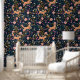 Une belle aquarelle fleur sauvage peel et papier peint en bâton avec d'adorables renards boisés. Parfait pour les espaces de vie et les projets do-it-yourself.