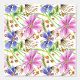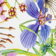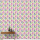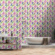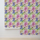 Papier Peint Fleurs Cosmos rose et bleu sur blanc