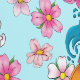 Poisson koi aux fleurs de lotus et aux fleurs de cerisiers, le tout dans un décor d'eau