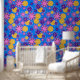 Papier Peint Fleurs fantaisie sur bleu