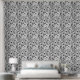 Joli noir et blanc fleurs modernes et notes musicales bâton et peel papier peint.