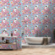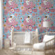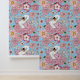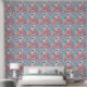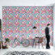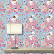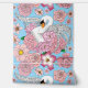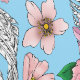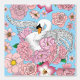 Un cygne blanc entouré de fleurs roses sur fond bleu