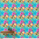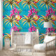 Papier Peint Fleurs tropicales île de fruits bleu motif côtier
