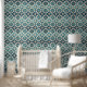 Papier Peint Floral Marocain Carrelage Motif#1 Turquoise Blanc
