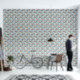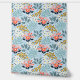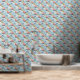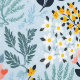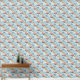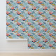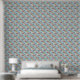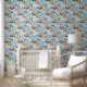 Des fleurs pop art colorées et stylisées, aux accents bleu, vert et noir sur un arrière - plan bleu ciel, forment un papier peint moderne et élégant.