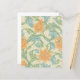 Papier à scandale inspiré d'un beau papier peint floral de William Morris (tige simple, 1905). Au premier plan, quelques grandes fleurs oranges entourées d'un motif sinueux de tiges et de feuilles, derrière cela se trouve un motif arrière - plan de petits feuilles pâles. William Morris à son meilleur : un motif élaboré, de nombreuses couleurs (orange, bleu, vert et crème), et encore un ensemble harmonieux, tout se marie.