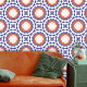 Papier Peint Folk Ethnic Talavera Bleu Orange Blanc Géométrique