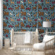 Papier Peint Forêt boisée Doodle Animaux Crème