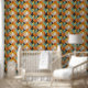 Papier Peint Formes ovales rétro Orange Turquoise Gold Motif