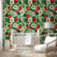 Papier Peint Fraise blanche Fleurs d'aquarelle Printemps Floral