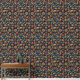 Papier Peint Framboise rouge et bleuet bleu Feuille doré foncé