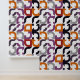 Papier Peint Funky Rouge violet orange noir Motif d'art rétro