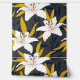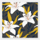 Bright white lilies bloom against a dark charcoal (navy-gray) background, accentuated by foliage with bold mustard gold highlights. This contrast creates a sense of mysterious depth and instant luxury, perfect for a feature wall in your living room, home office, or luxurious bedroom.