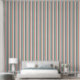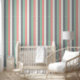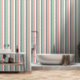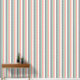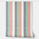 Le design présente des couleurs pastel douces de vert, orange saumon, pêche, rose rose, blanc cassé et gris dans un motif à rayures verticales. Pour des questions ou des demandes spéciales, contactez l'artiste à l'adresse wafadahdalcreates@gmail.com. © Wafa Y. Dahdal - Tous droits réservés. Art WD