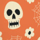 Ajoutez une touche vibrante et éffrayante à votre espace avec ce papier peint Halloween crâne orange et toile d'araignée. Doté d'un motif ludique de crânes couleur crème, de toiles d'araignée complexes et de fleurs délicates contre un arrière - plan orange, ce design est parfait pour créer une atmosphère festive et lugubre. Idéal pour la décoration d'Halloween, ce papier peint est parfait pour les salons, les chambres ou les espaces de fête. Embrassez l'esprit d'Halloween avec ce design fantaisiste et saisissant qui capte l'essence de la saison.