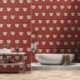 Ce papier peint présente le design original de HoMeArts des lovebirds de Robin bleu oeuf et vert avocat entourés de branches et de baies rouges sèches dans un coeur jaune citron se démarque d'un arrière - plan de rayures rouge foncé et crème.