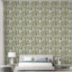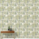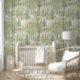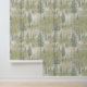 Une illustration d'art d'imaginaire de style moderne, très agréable, représente divers pins verts, grands, clairs, moyens et foncés, avec un arrière - plan crémeux