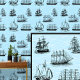 Papier Peint Illustrations de voilier sur les vagues bleues