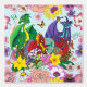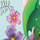 Trois bébés dragons qui éclosent dans un nid d'oeufs de dragon. Les fleurs et les papillons sont en toile de fond bleu tout autour du nid de dragon.