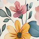 Cette oeuvre présente un motif délicat et dynamique de fleurs en fleurs dans des tons pastel roses, bleus, jaunes et crème. Les fleurs sont minutieusement détaillées, avec un effet de dégradé subtil qui ajoute profondeur et dimension à chaque pétale. L'agencement des fleurs est vivant mais harmonieux, avec des feuilles et de petits bourgeons entrecoupés entre les grandes fleurs. Le design dégage un sentiment de fraîcheur et de beauté, captant l'essence d'un jardin en pleine floraison avec une touche douce et romantique.